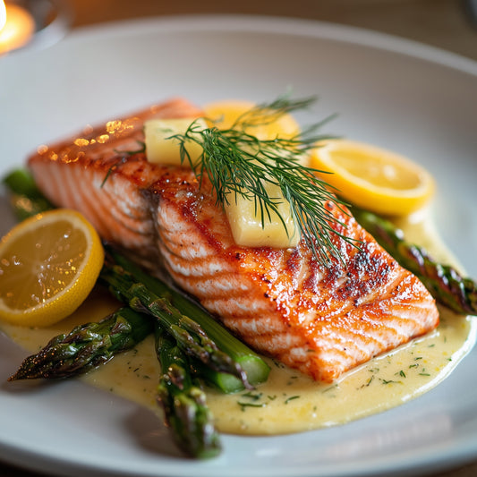 Grilled Salmon with Asparagus & Citrus Butter – AI Food Image (Digital Download)