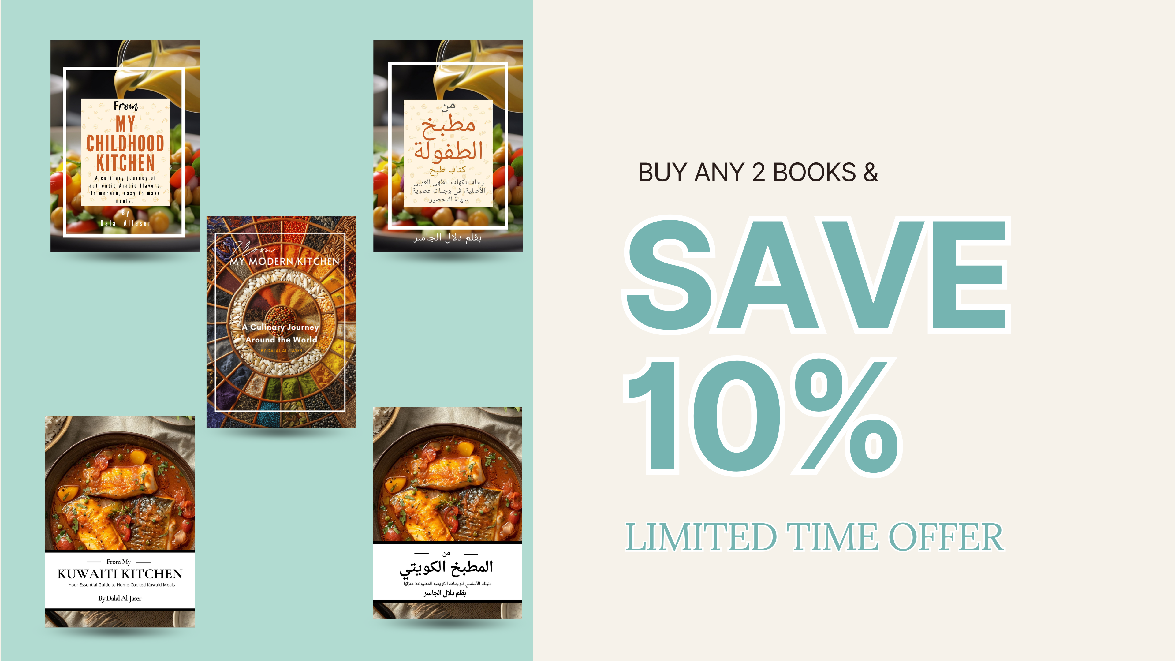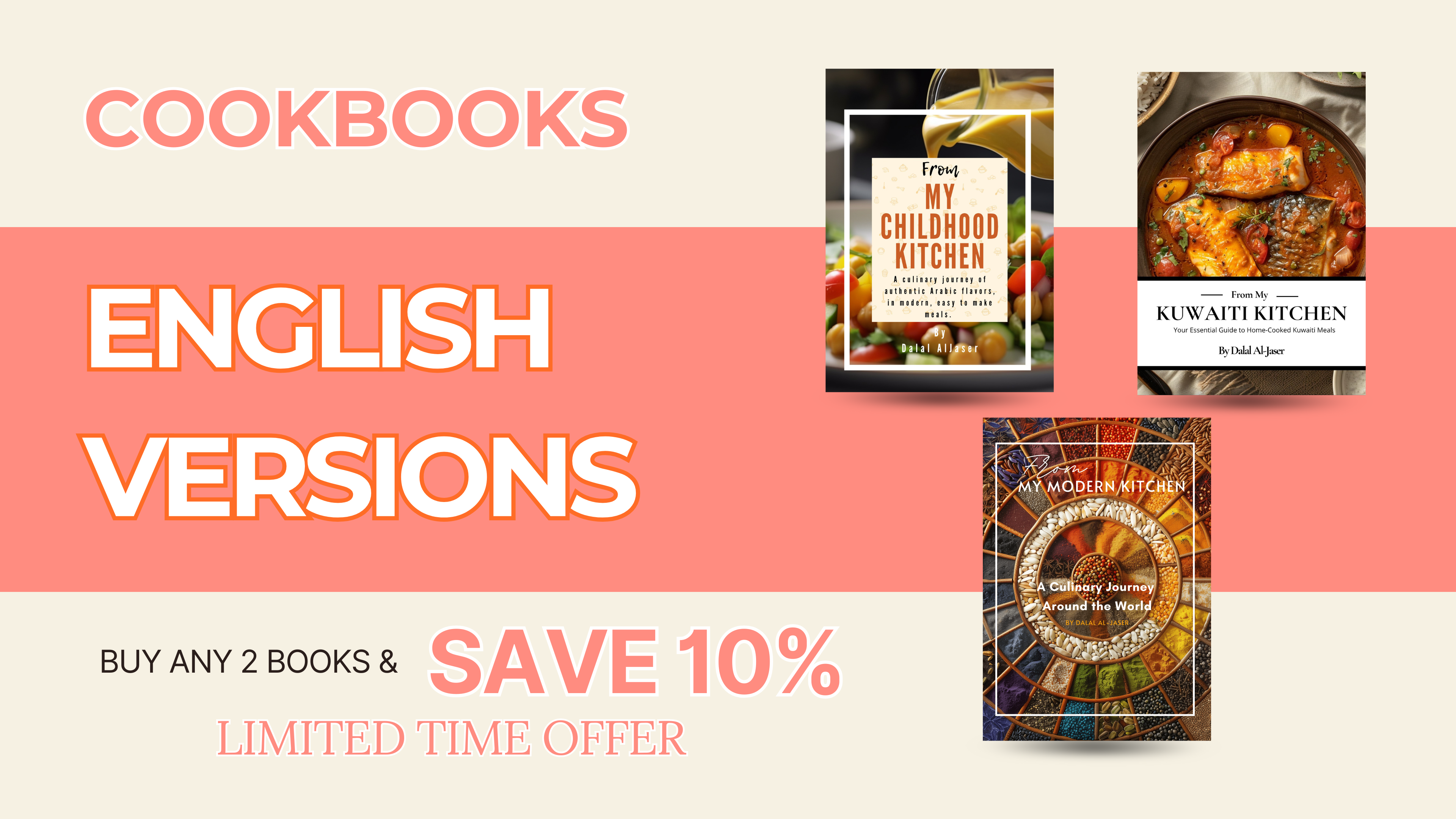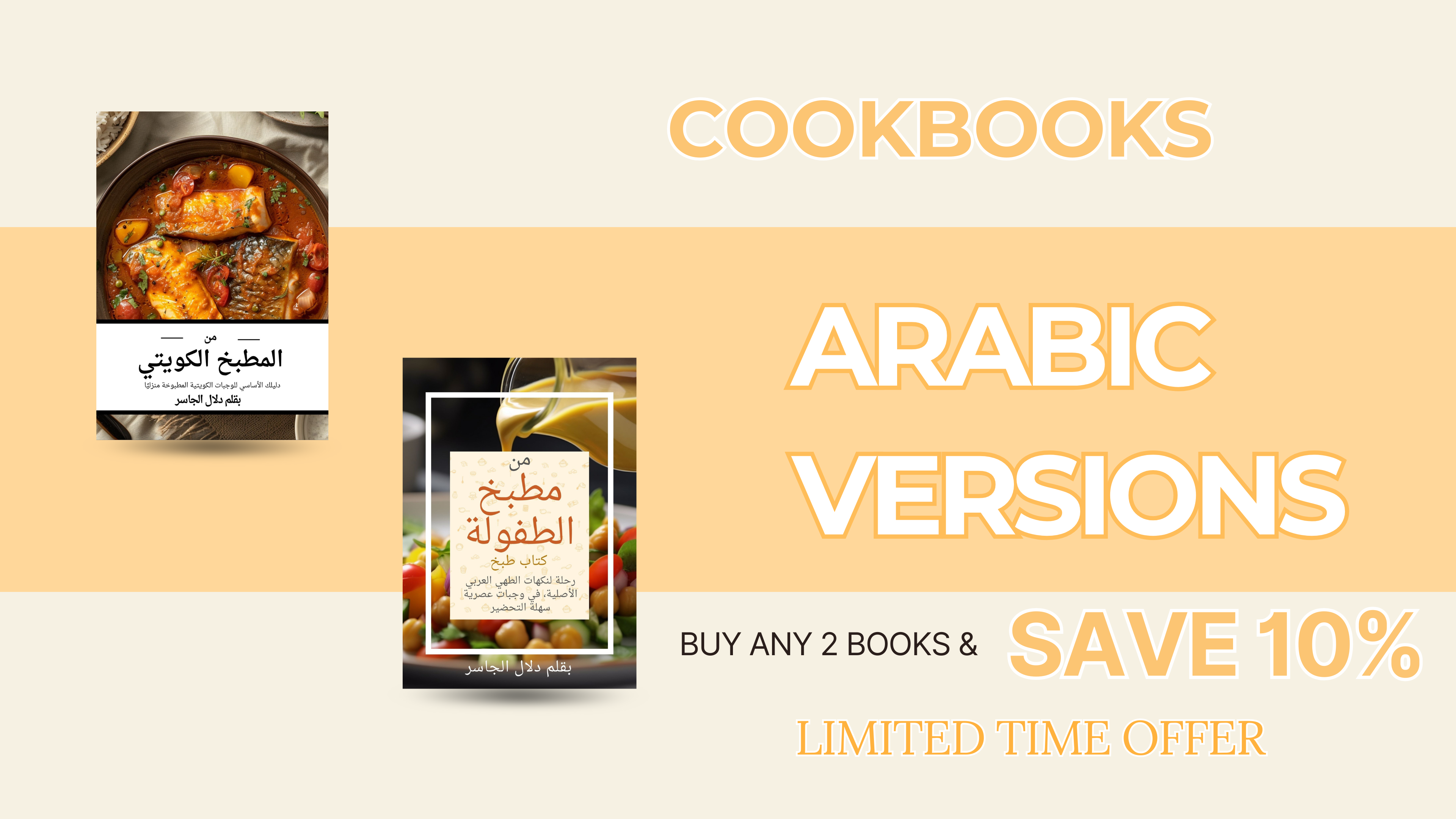 Digital e-books and bundles featuring Kuwaiti staples, modern twists, and cultural context—available in English and Arabic.